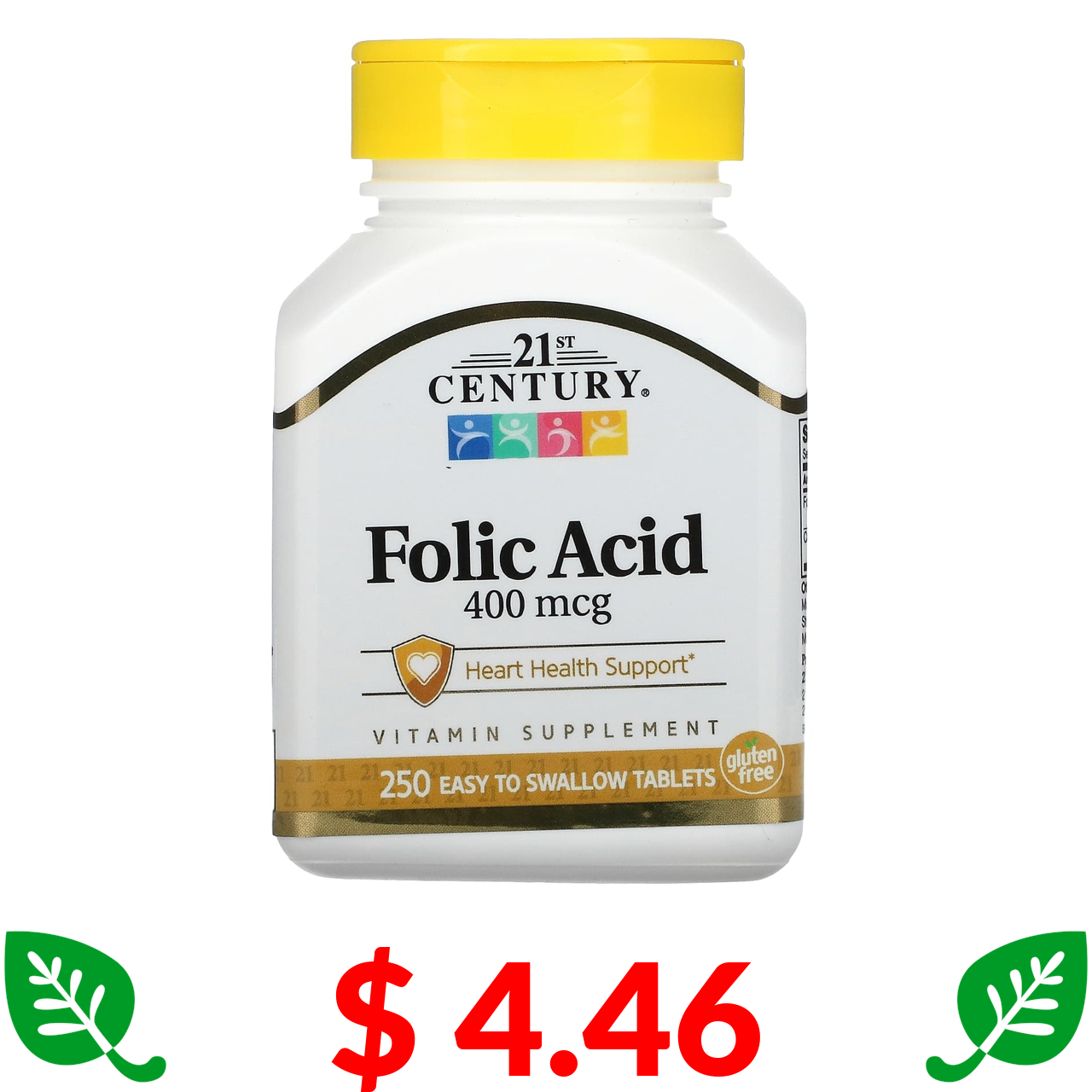 $ 4.46 21st Century, Фолиевая кислота, 400 мкг, 250 легко проглатываемых таблеток