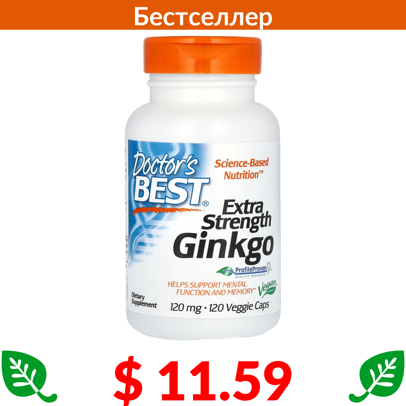 $ 11.59 Докторс Бэст, гинкго с повышенной силой действия, 120 мг, 120 вегетарианских капсул