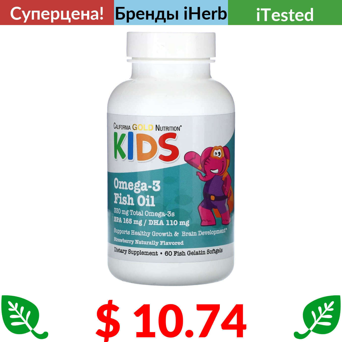 $ 10.52 Нордик Натуралс, Daily Omega Kids, со вкусом натуральных фруктов, 30 капсул