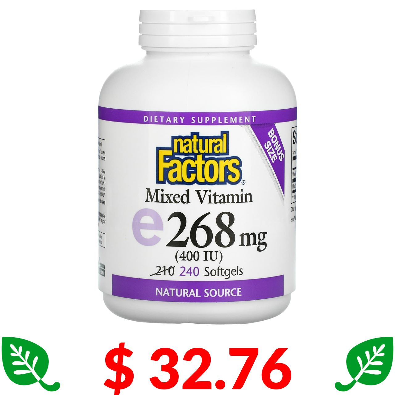 $ 32.76 Natural Factors, Витамин Е, 400 МЕ, 240 мягких желатиновых капсул