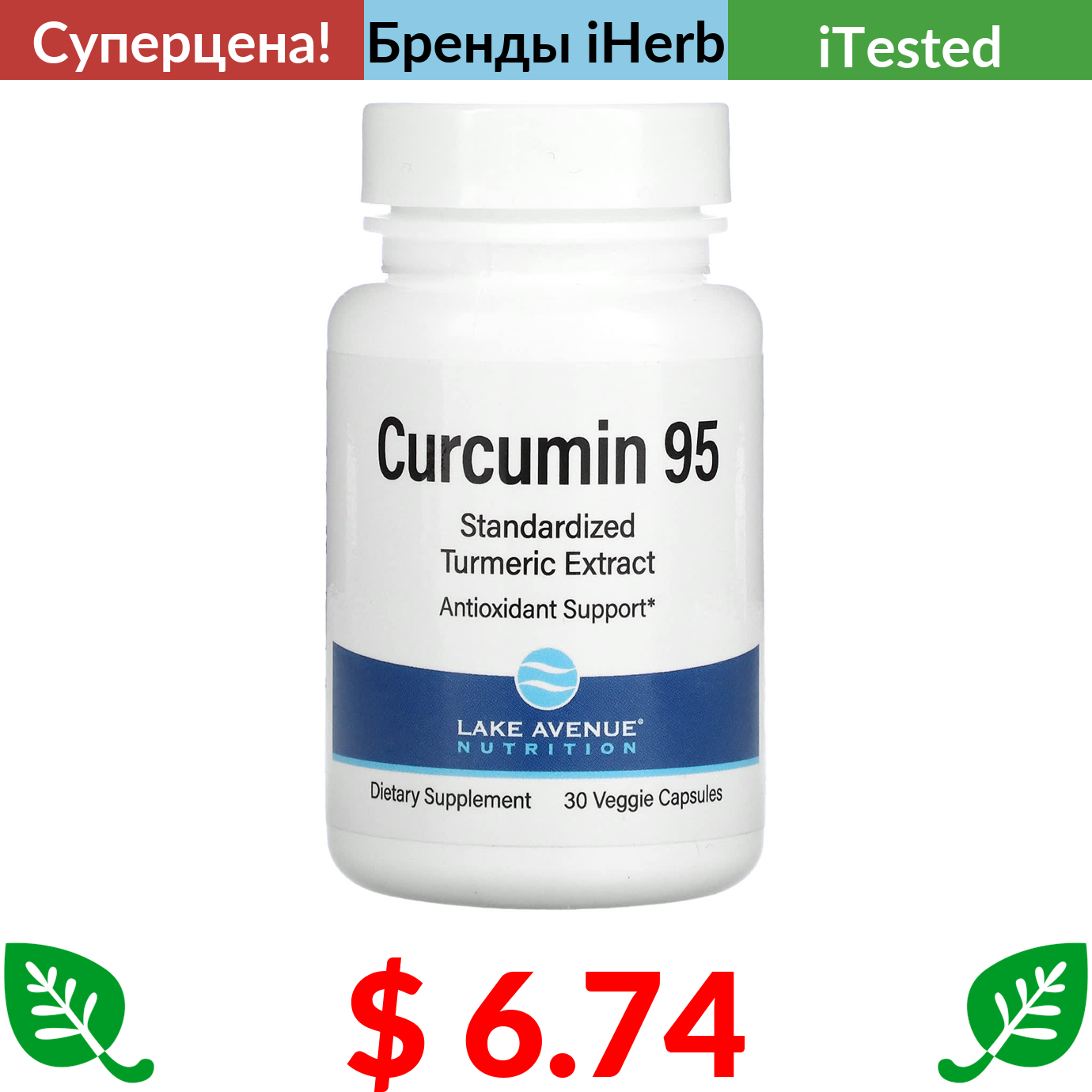 $ 6.74 Lake Avenue Nutrition, куркумин 95, 500 мг, 30 вегетарианских капсул