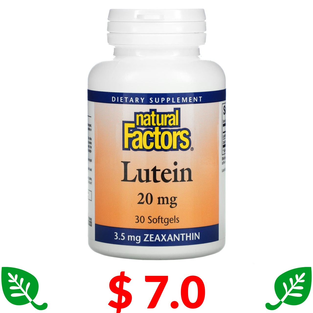 $ 7.0 Natural Factors, лютеин, 20 мг, 30 мягких таблеток