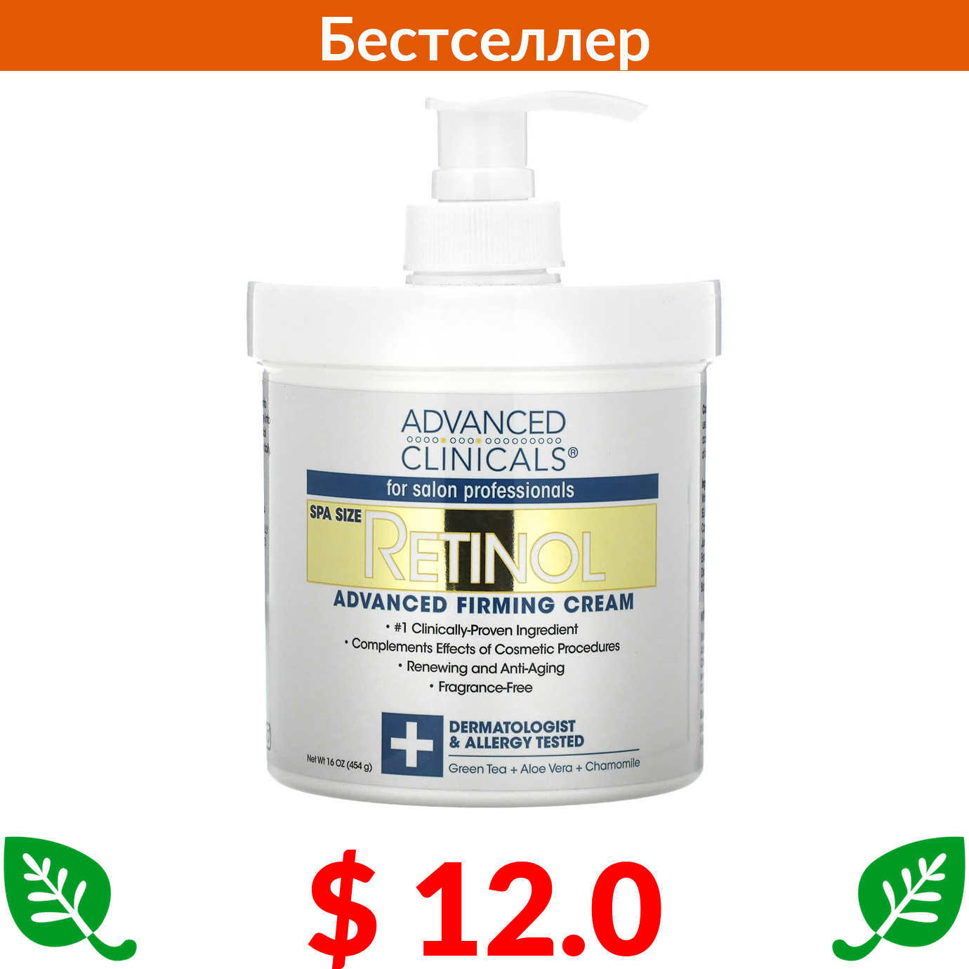 $ 12.0 Advanced Clinicals, Retinol, укрепляющий крем с улучшенной формулой, 454 г (16 унций)