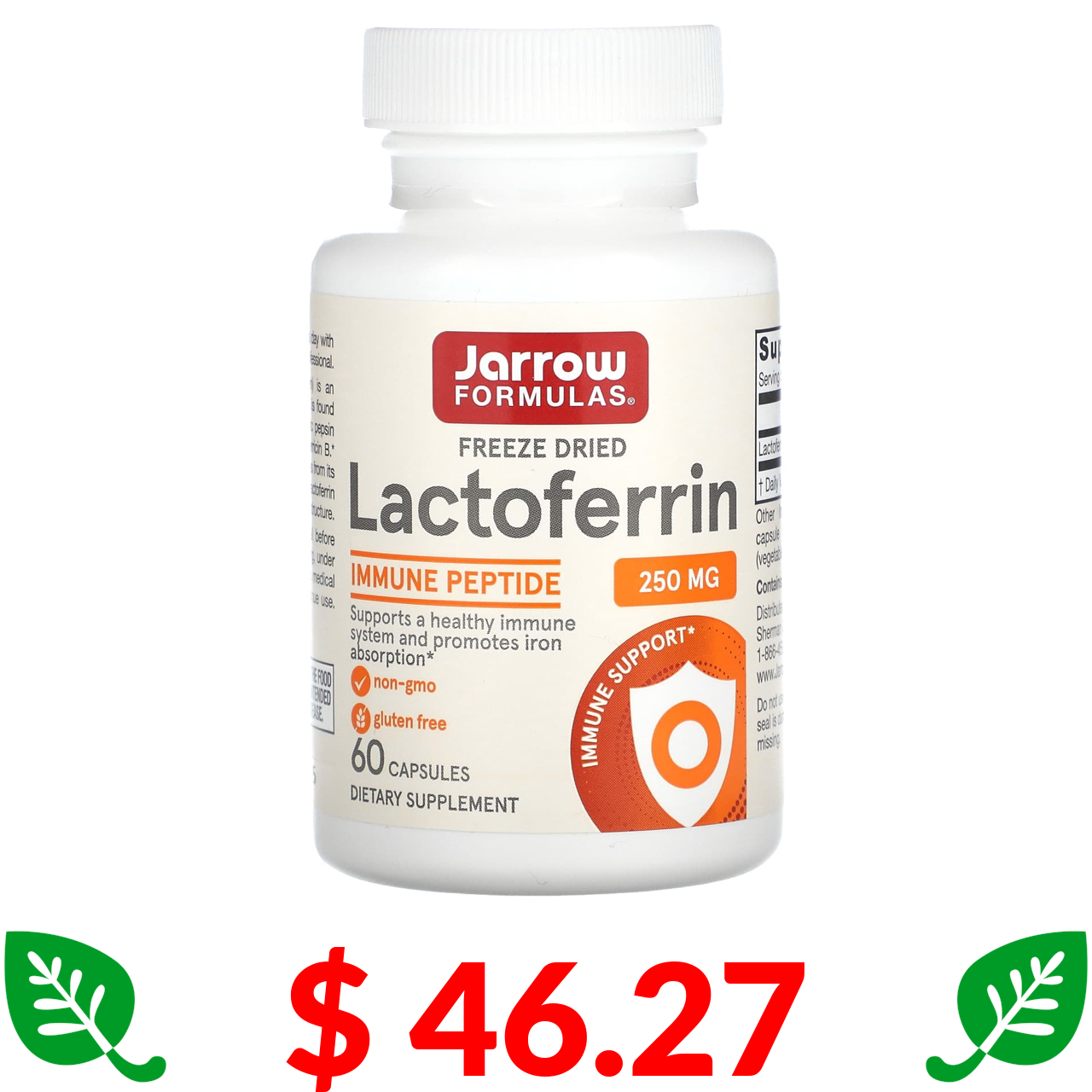 $ 46.27 Jarrow Formulas, лактоферрин, сублимированный, 250 мг, 60 капсул