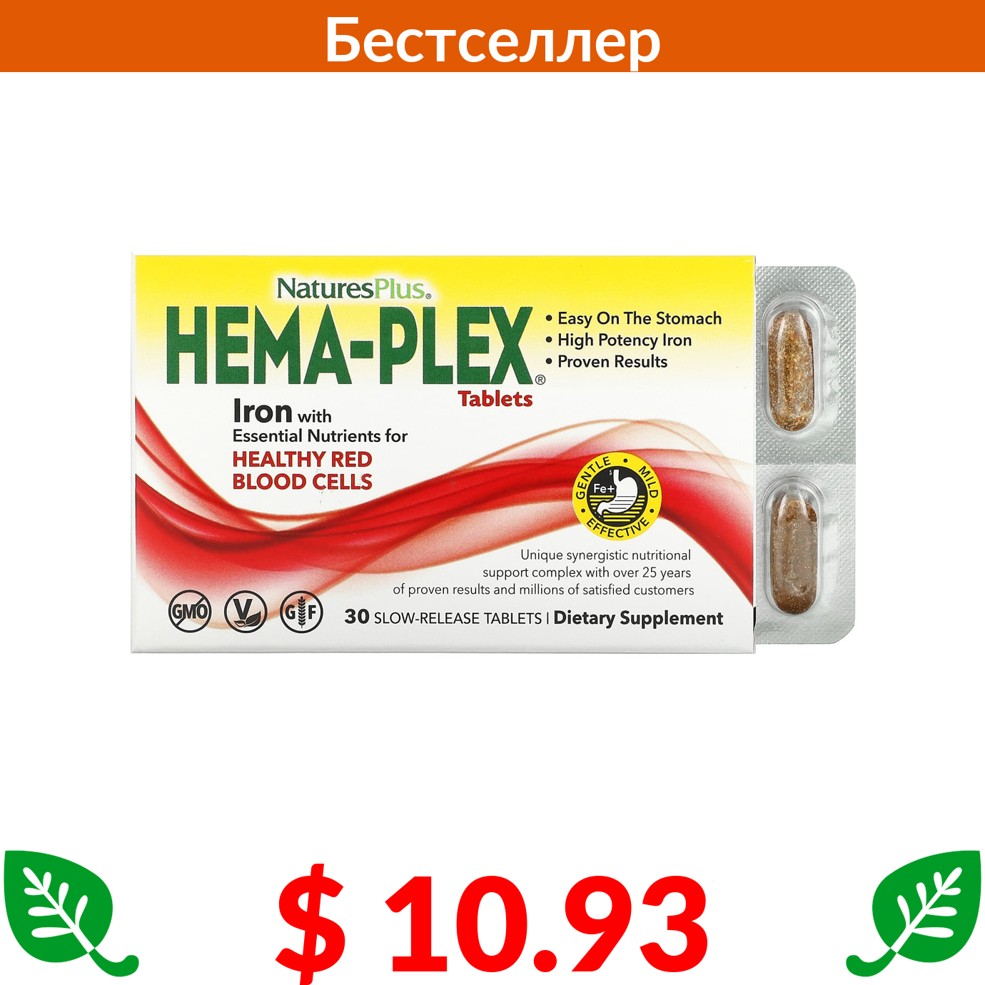 $ 10.93 NaturesPlus, Hema-Plex, 30 таблеток с длительным высвобождением