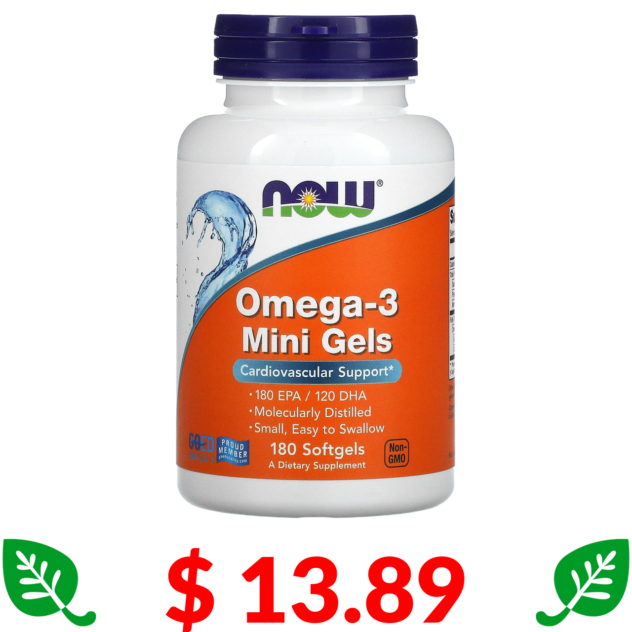 $ 13.89 Now Foods, жирные кислоты омега-3 в мини-капсулах, 180 ЭПК / 120 ДГК, 180 капсул