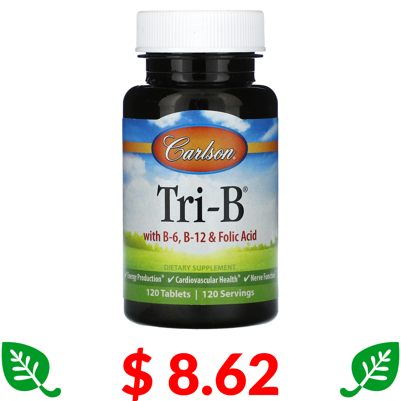 $ 8.62 Carlson, Tri-B с витаминами B6, B12 и фолиевой кислотой, 120 таблеток