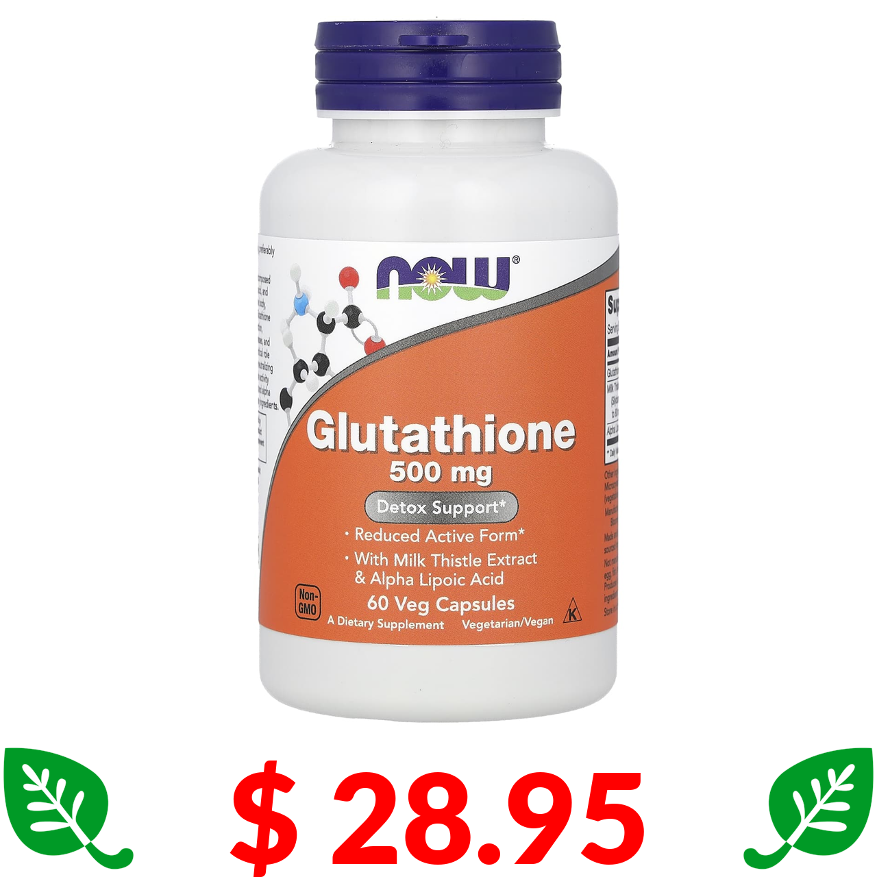 $ 28.95 Now Foods, глутатион, 500 мг, 60 растительных капсул
