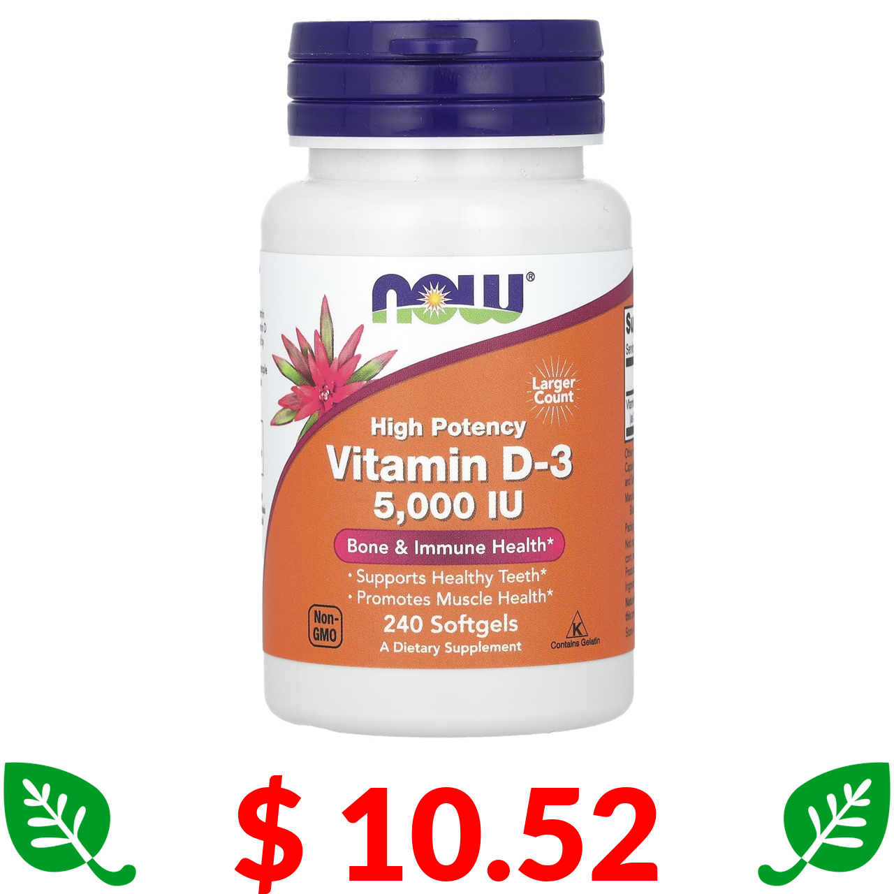 $ 10.52 Now Foods, Витамин D3, высокая эффективность, 125 мкг (5000 МЕ), 240 мягких таблеток