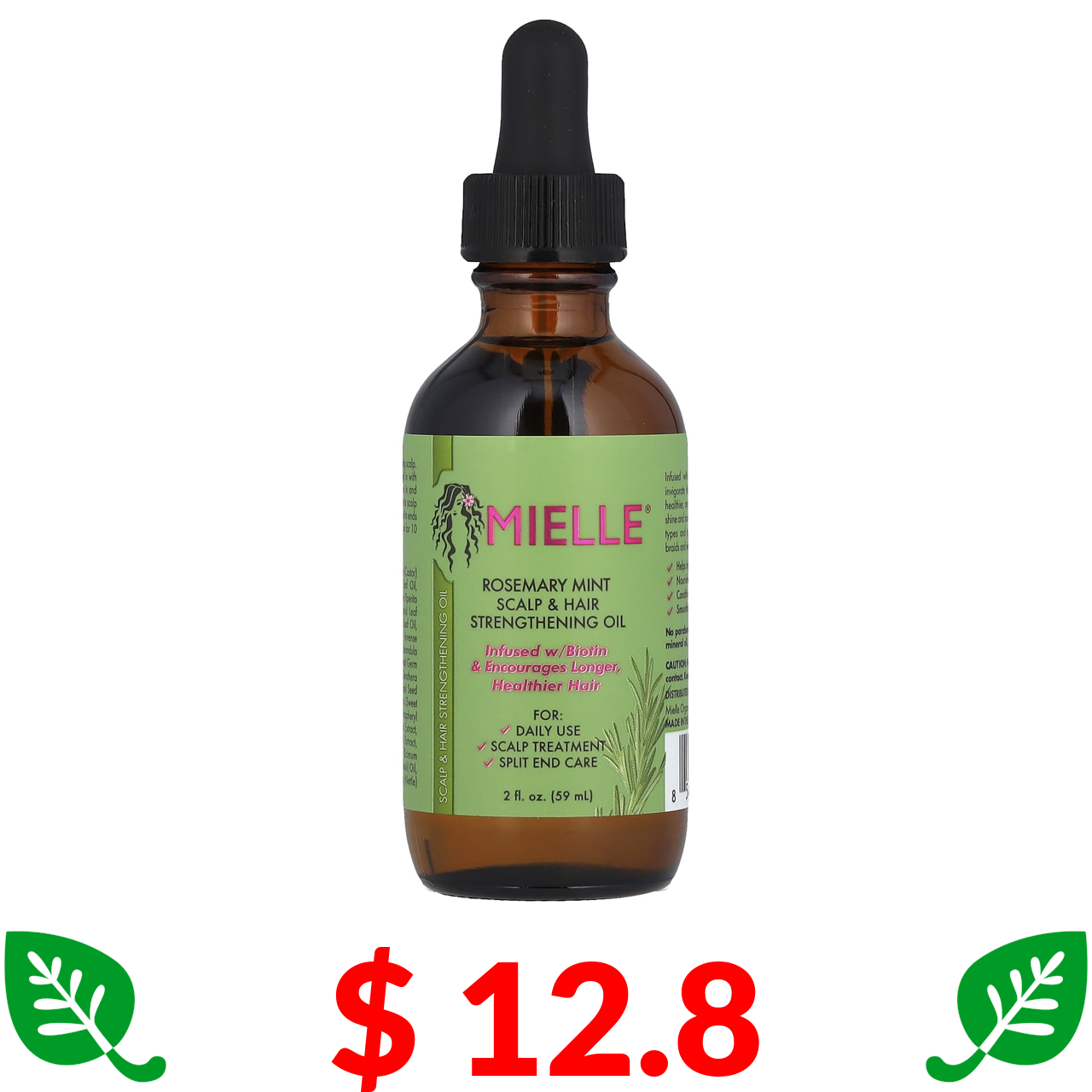 $ 12.8 Mielle, Масло для укрепления волос и кожи головы, розмарин и мята, 59 мл (2 жидк. Унции)
