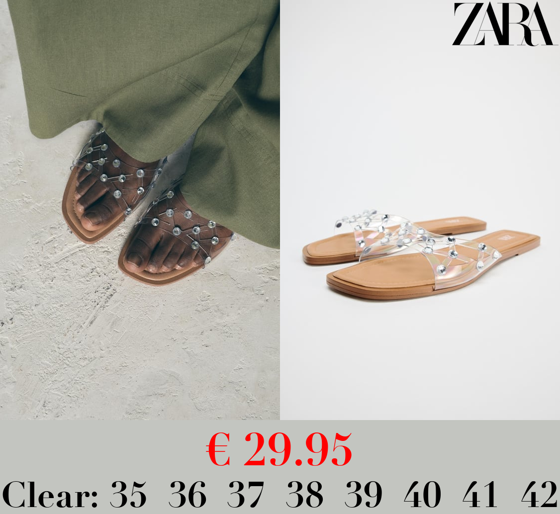 € 29.95 FLAT VINYL SANDALS WITH RHINESTONES