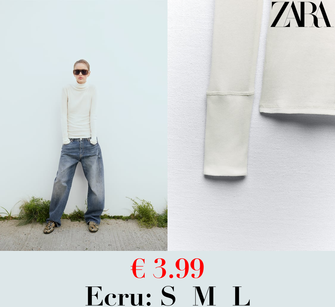 € 3.99 SEMI-SHEER DELICATE COTTON TOP WITH CUFFS AND SEAM DETAIL
