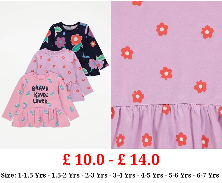 £ 10.0 - £ 14.0 Fun Floral Long Sleeve Peplum Tops 3 Pack