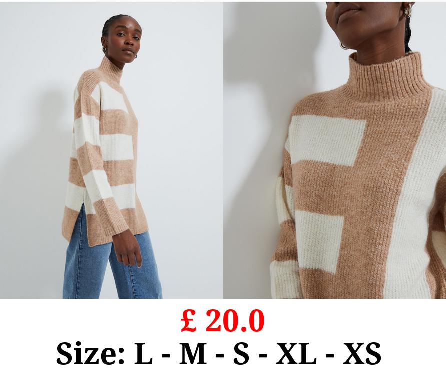 £ 20.0 Neutral Striped Roll Neck Knitted Tunic