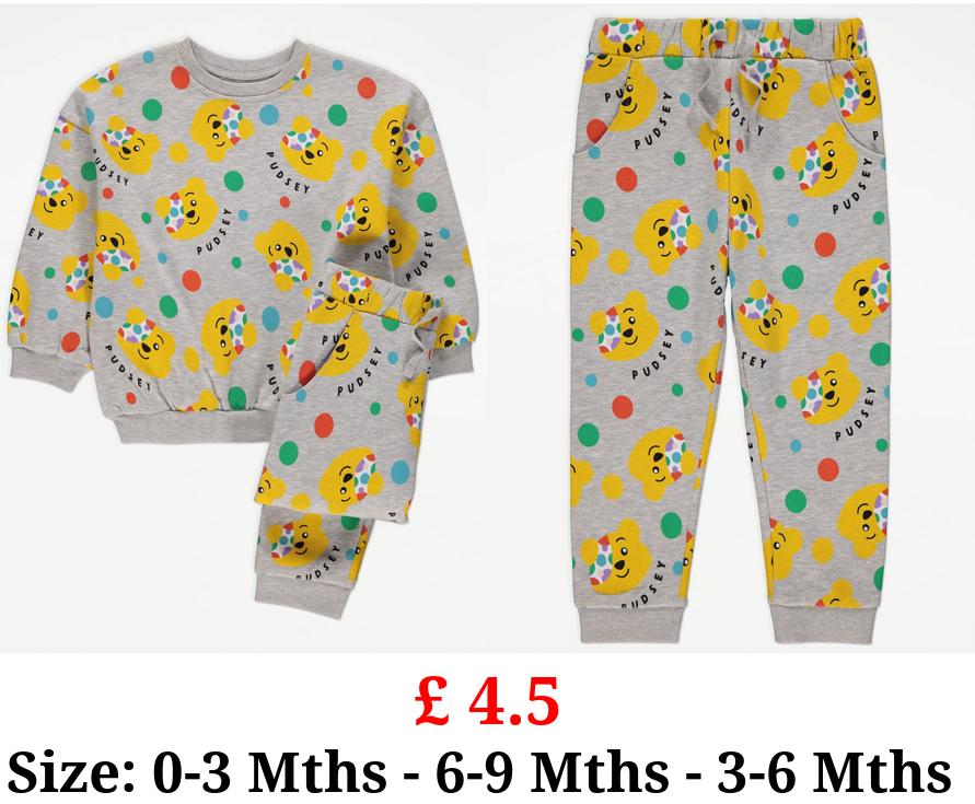 £ 4.5 Children In Need Pudsey Grey Sweatshirt and Joggers Outfit