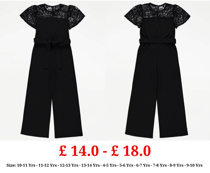 £ 14.0 - £ 18.0 Black Lace Belted Jumpsuit