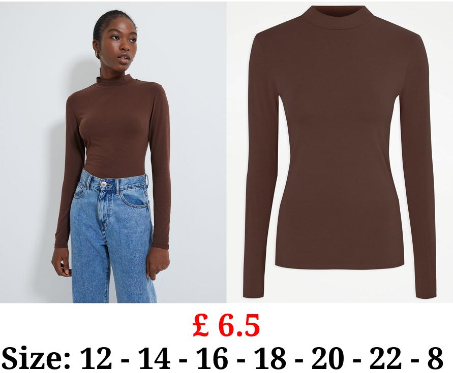 £ 6.5 Chocolate High Neck Long Sleeve Top