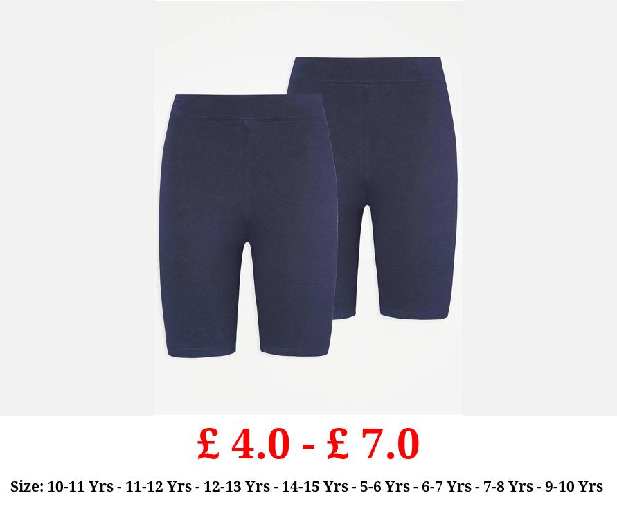£ 4.0 - £ 7.0 Girls Navy Cotton Rich Jersey School Shorts 2 Pack