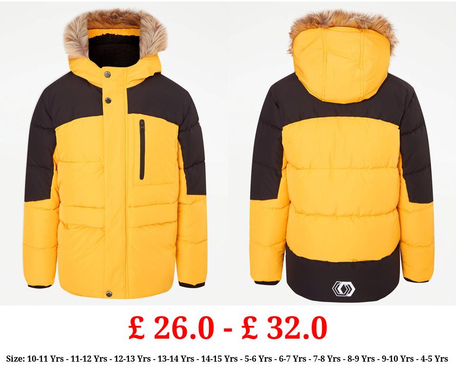 £ 26.0 - £ 32.0 Yellow Faux Fur Trim Padded Coat
