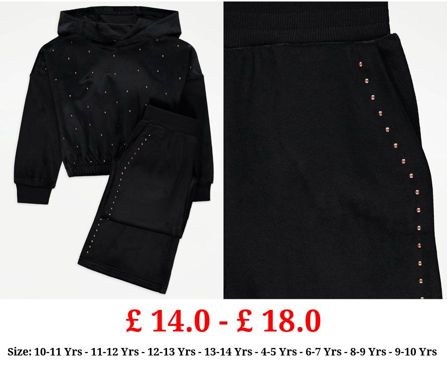 £ 14.0 - £ 18.0 Black Sparkle Velour Hoodie and Trousers Outfit
