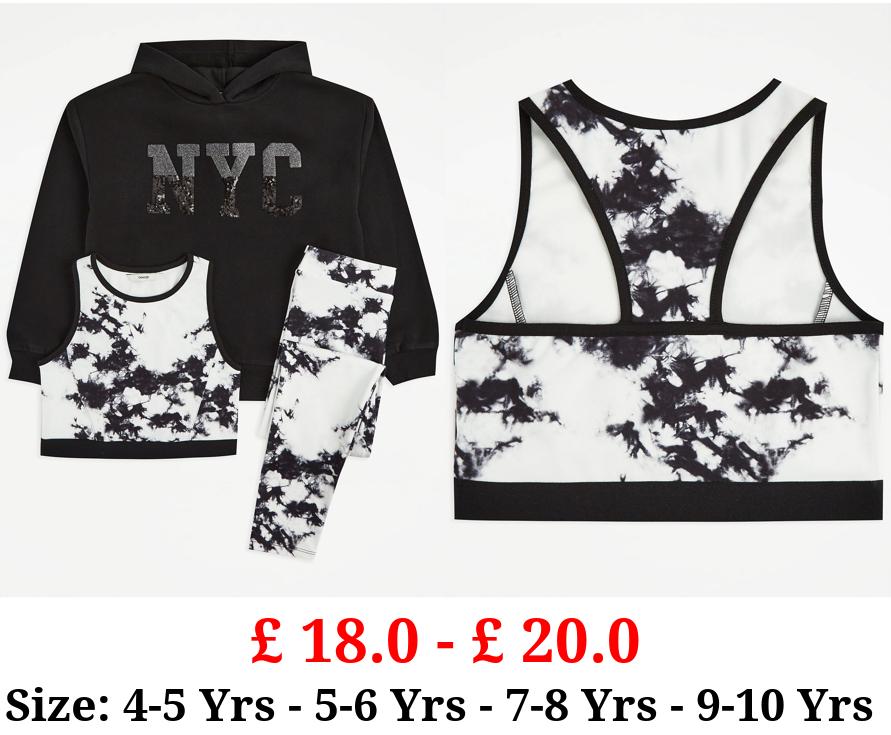 £ 18.0 - £ 20.0 Black Tie Dye Hoodie Crop Top and Leggings Outfit
