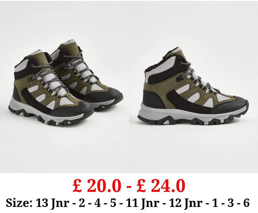 £ 20.0 - £ 24.0 Khaki Panelled Fleece Lined Mountain Boots