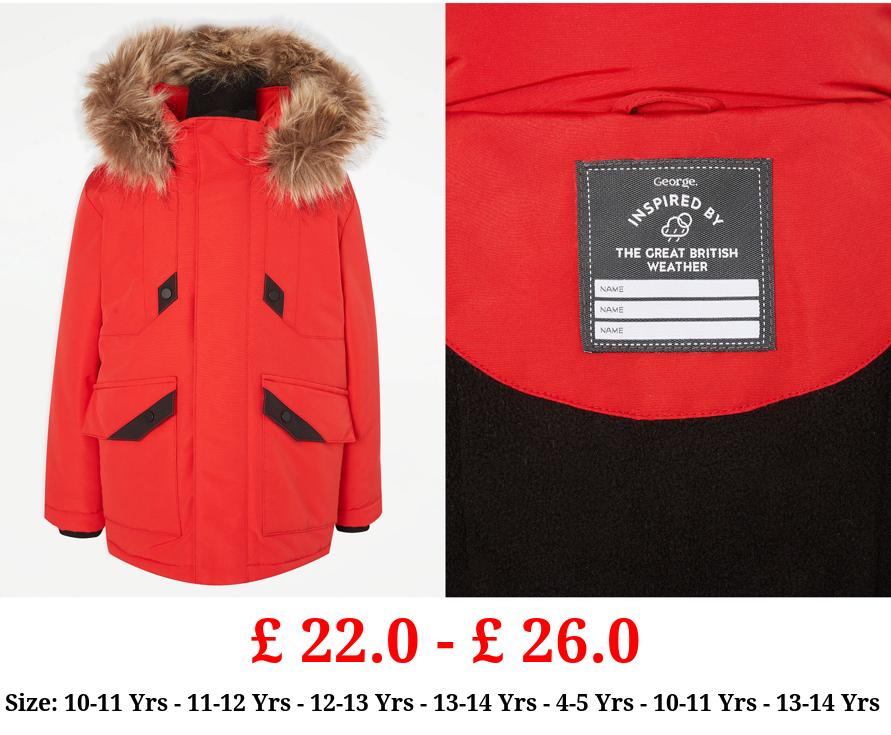 £ 22.0 - £ 26.0 Red Faux Fur Trim Parka Coat
