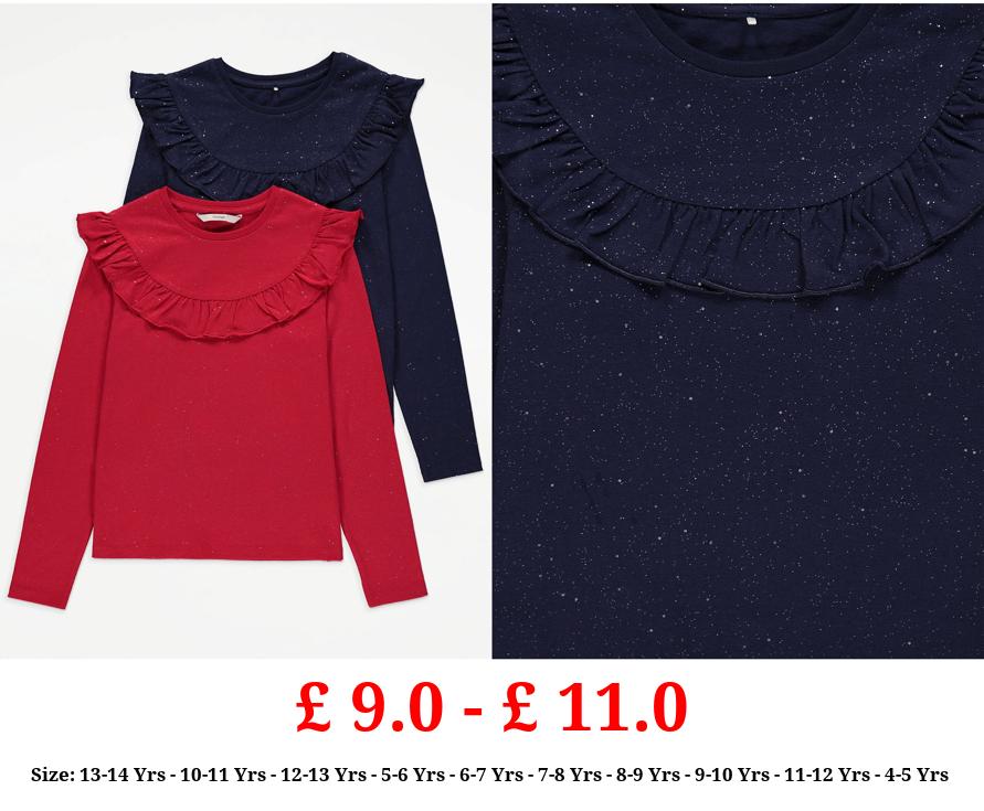 £ 9.0 - £ 11.0 Glitter Sparkle Long Sleeve Ruffle Tops 2 Pack