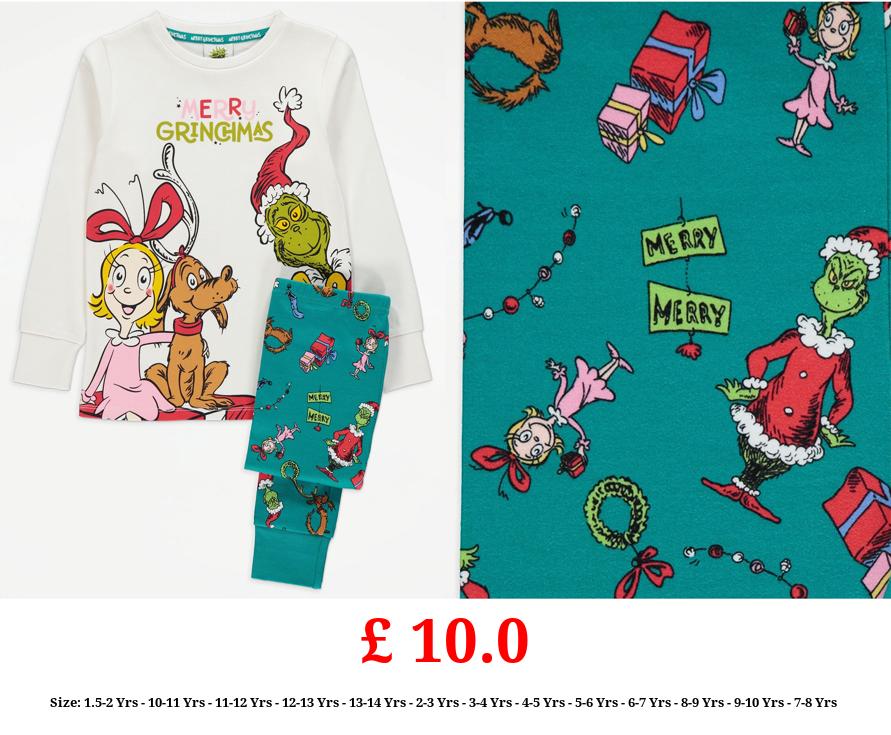 £ 10.0 The Grinch Merry Grinchmas Matching Kids Christmas Pyjamas