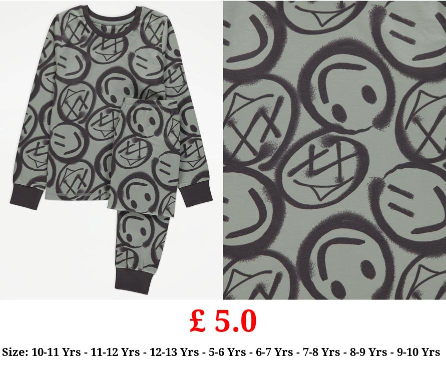 £ 5.0 Sage Green Smiley Face Long Sleeve Pyjamas Gift Set