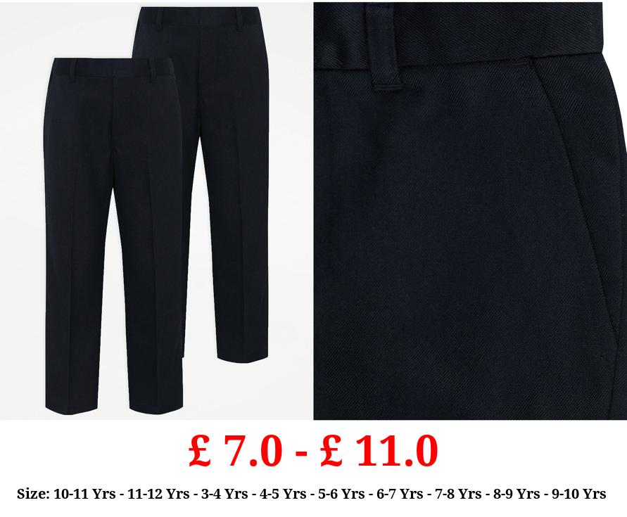£ 7.0 - £ 11.0 Boys Navy Half Elastic School Trousers 2 Pack