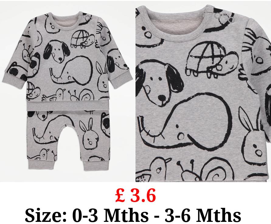 £ 3.6 Grey Animal Sketch Sweatshirt and Joggers Outfit