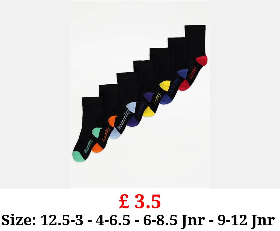 £ 3.5 Black Day of the Week Cotton Rich Ankle Socks 7 Pack