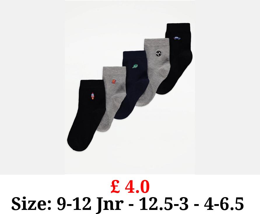 £ 4.0 Embroidered Ankle Socks 5 Pack