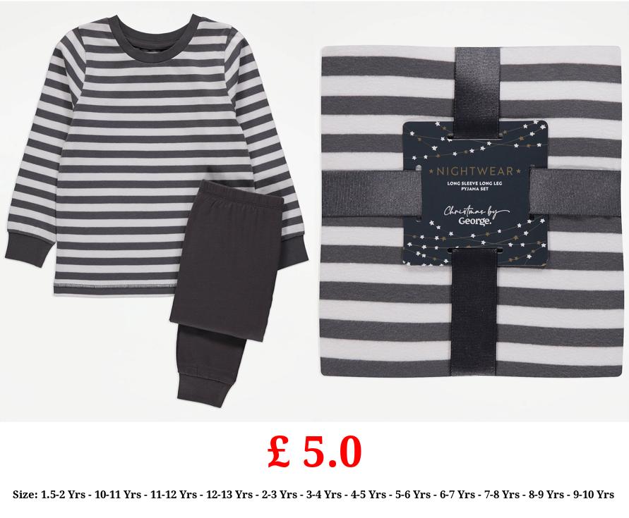 £ 5.0 Grey Stripe Pyjamas Long Sleeve Gift Set