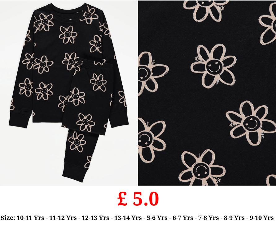 £ 5.0 Black Smiley Daisy Long Sleeve Pyjamas Gift Set