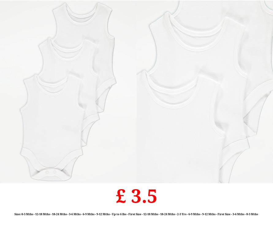 £ 3.5 White Sleeveless Bodysuits 3 Pack