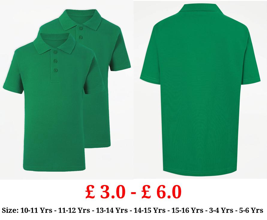 £ 3.0 - £ 6.0 Green Short Sleeve School Polo Shirts 2 Pack