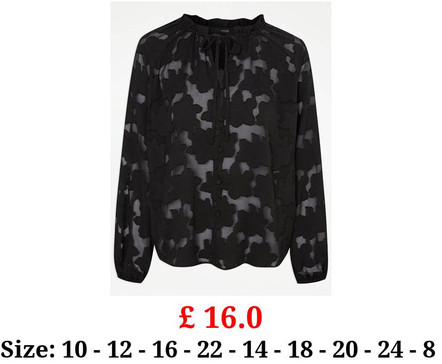 £ 16.0 Black Floral Popover Blouse