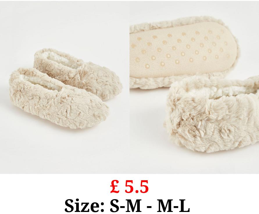 £ 5.5 Beige Textured Faux Fur Slipper Socks