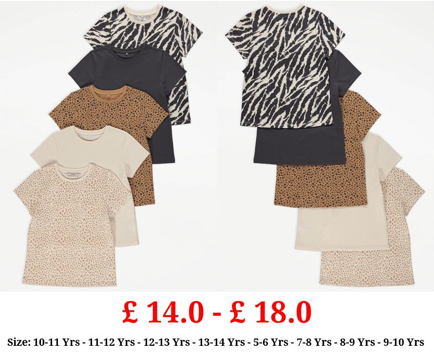 £ 14.0 - £ 18.0 Animal Print T-Shirts 5 Pack