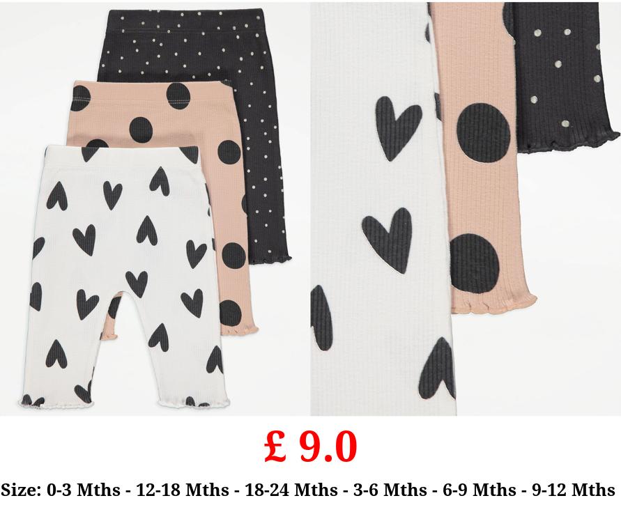 £ 9.0 Spot Heart Ribbed Leggings 3 Pack