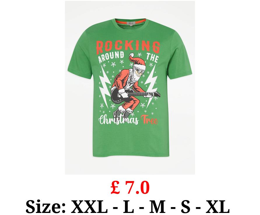 £ 7.0 Green Rocking Christmas Tree Graphic T-Shirt