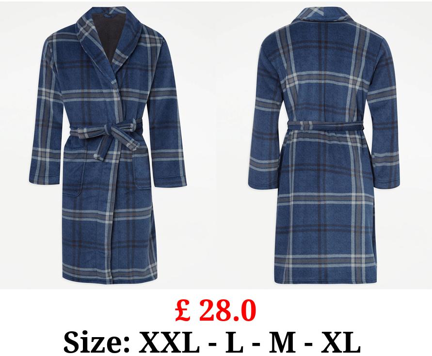 £ 28.0 Blue Checked Fleece Dressing Gown