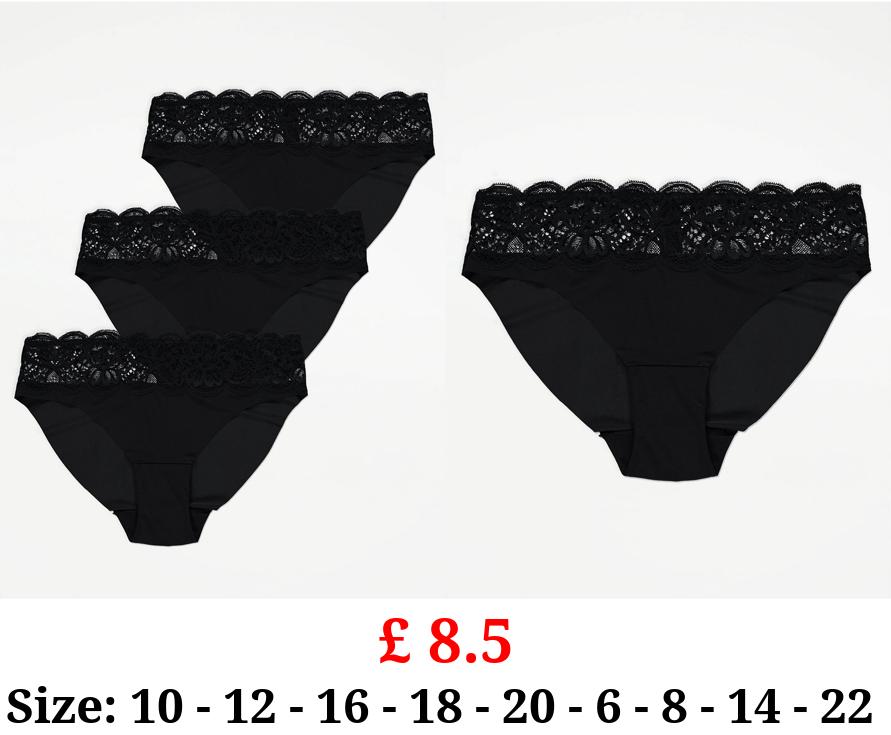 £ 8.5 Black Lace Trim High Leg Briefs 3 Pack