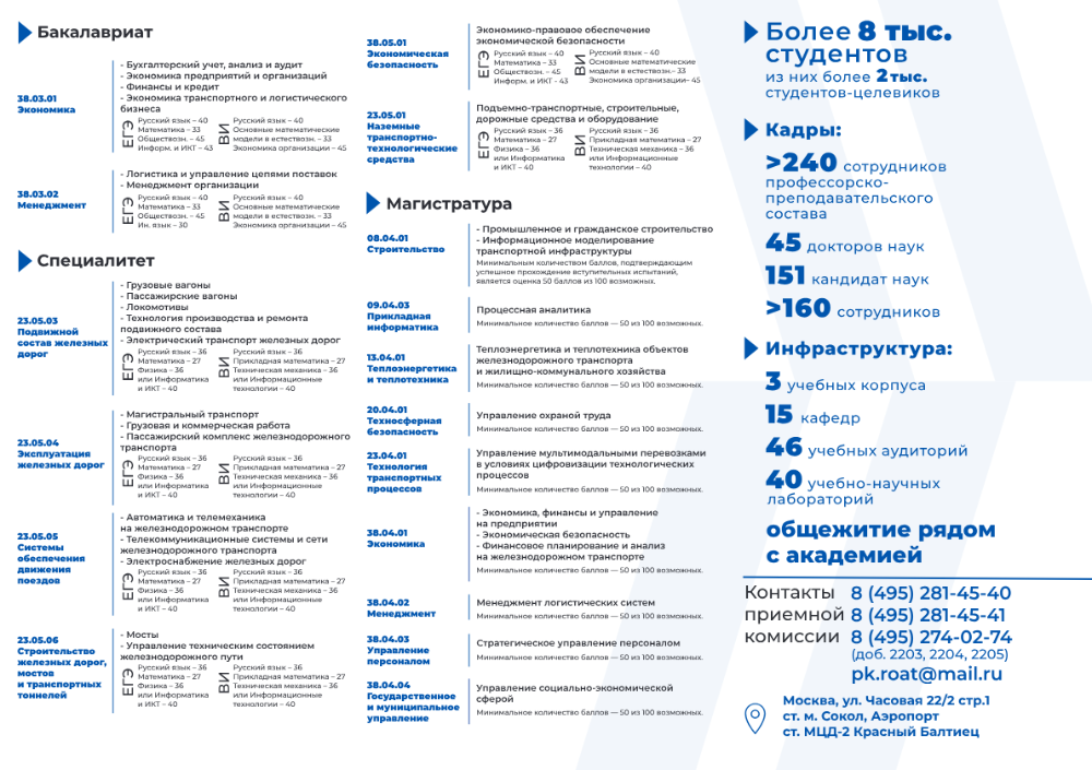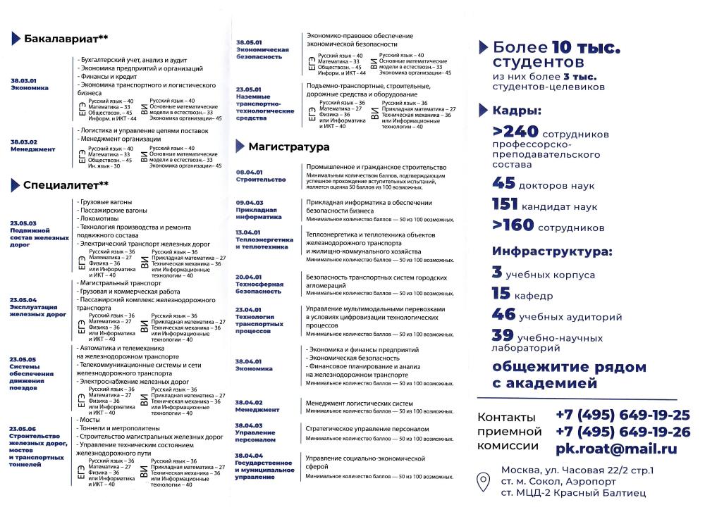 ы и специальности проходной