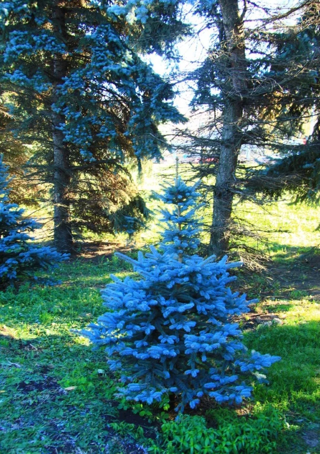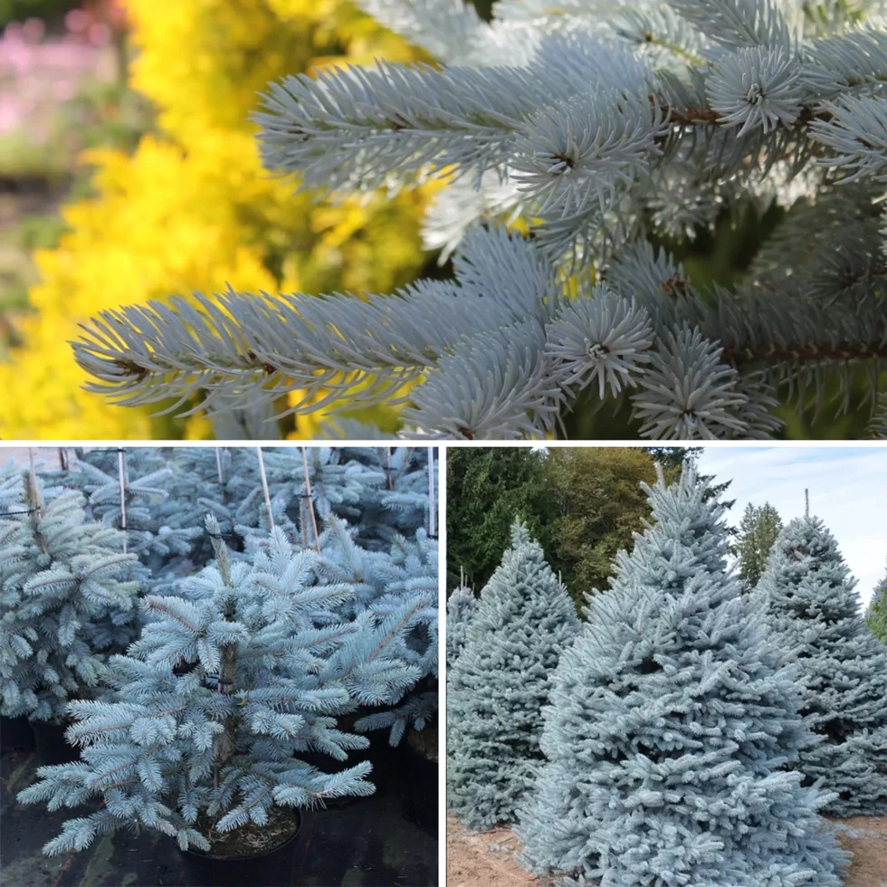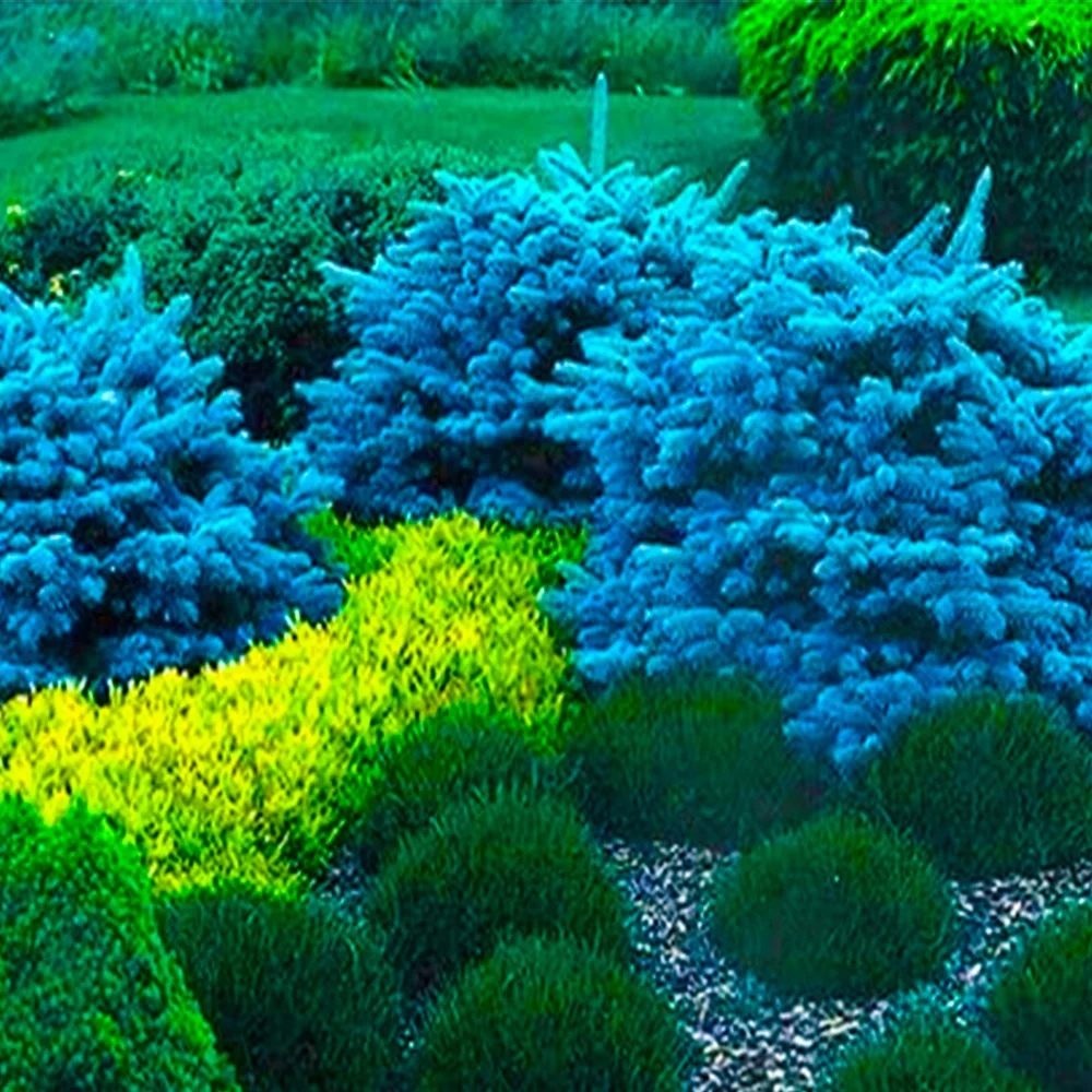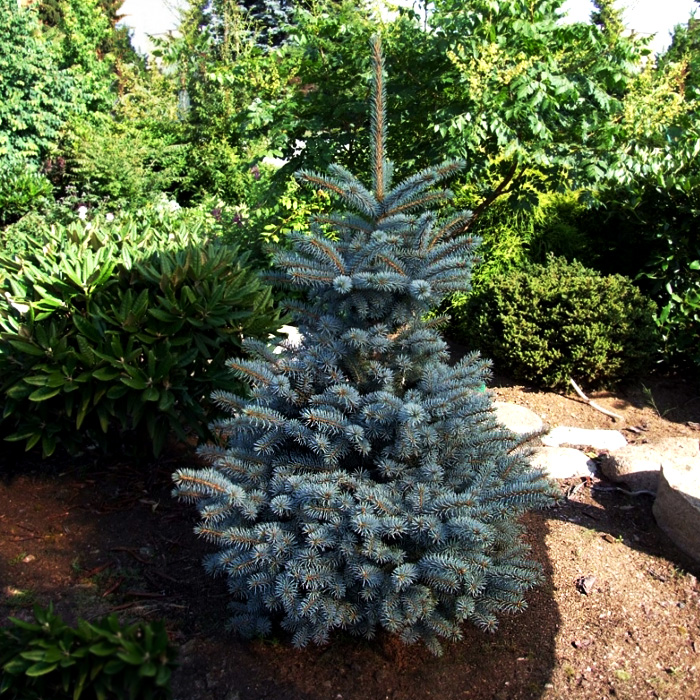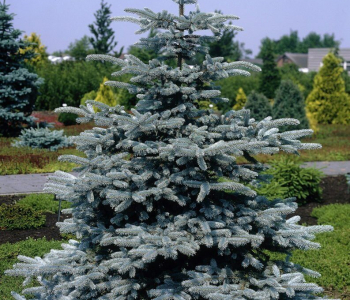 Голубая ель в саду 126 фото