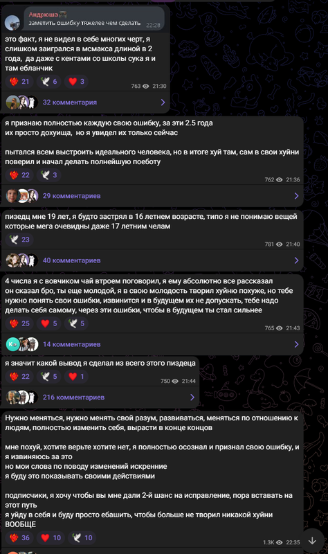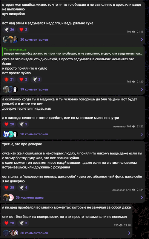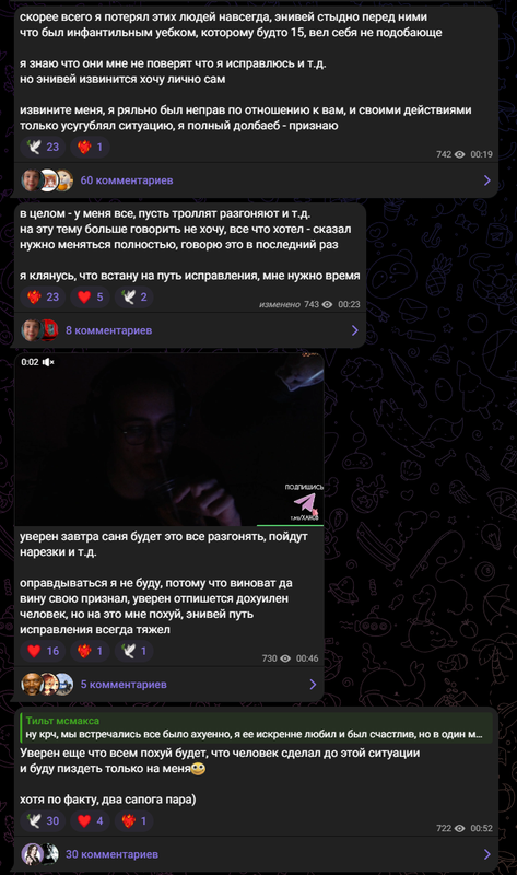 Посты с третьего телеграм канала макса где он ноет и пытается оправдаться по поводу всей ситуации: