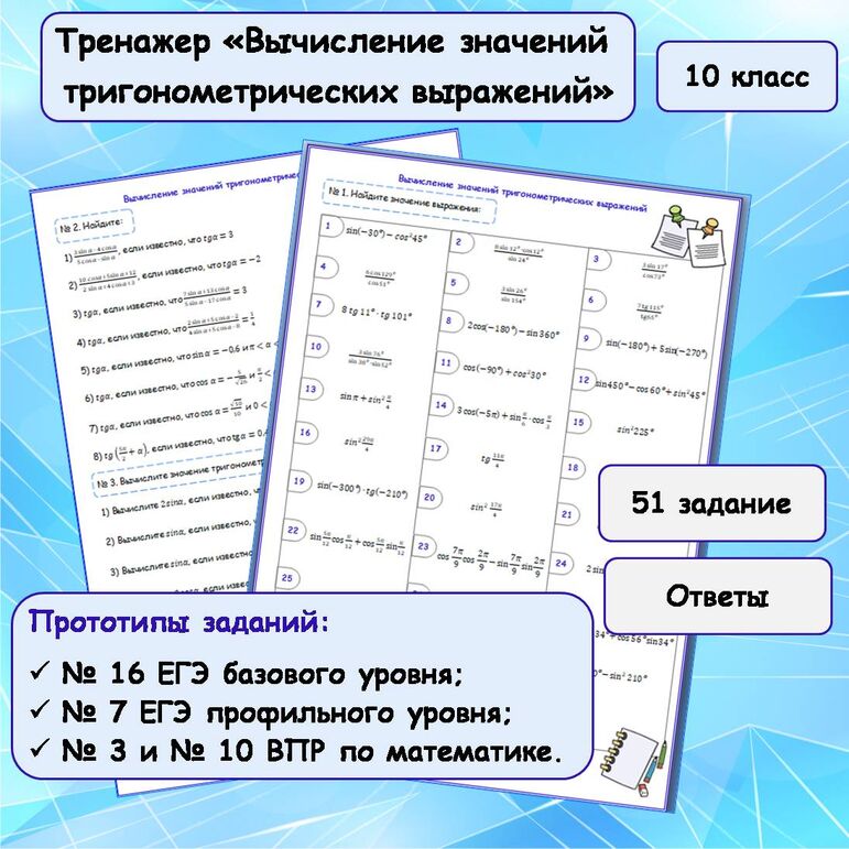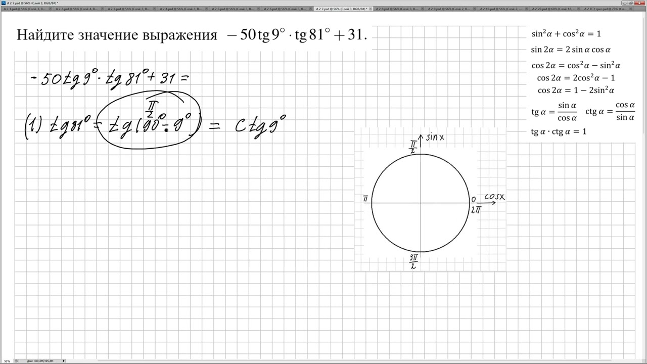 Значения тригонометрических выражений егэ 102 фото