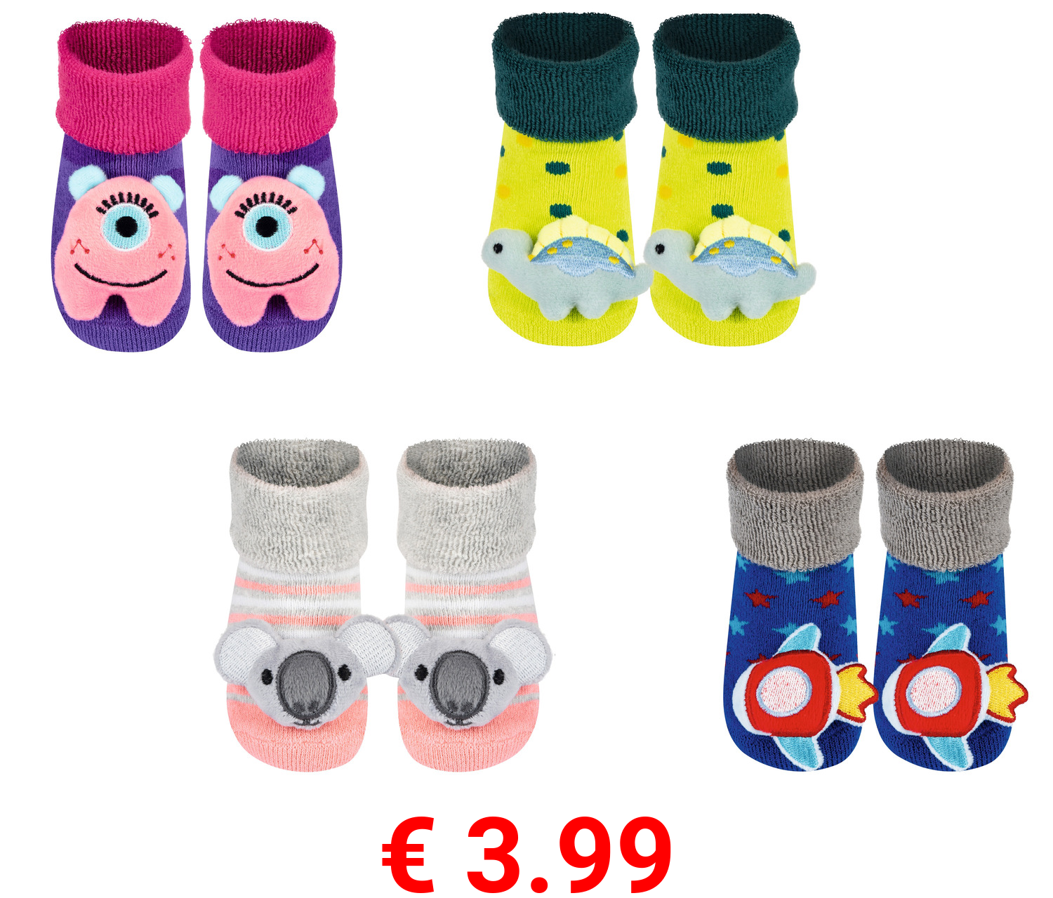 € 3.99 Soxo Baby Rassel-Socken mit verschiedenen Mustern